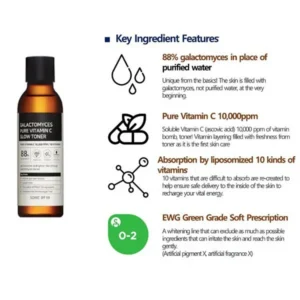 Une lotion tonique quotidienne envoutante qui apporte à la peau une luminosité exceptionnelle grâce à sa formule contenant 88% de galactomyces et 1% de vitamine C pure , Elle possède une double action : éclaircir le teint et atténuer les rides.