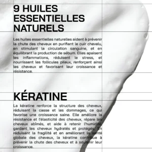 Shampoing : Anti-chute , Hydrate , Répare , Nourri , Purifie , Stimule .